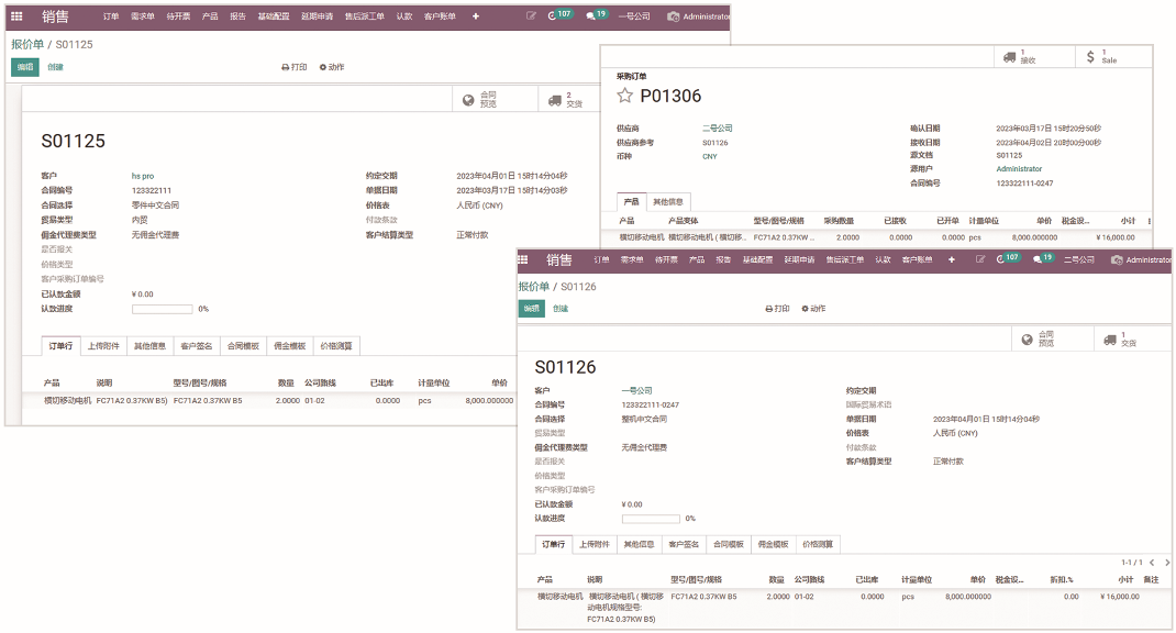 销售模块为用户提供电子合同、电子盖章、电子签名功能,销售单可直接关联交货单和财务数据,并可直接下发