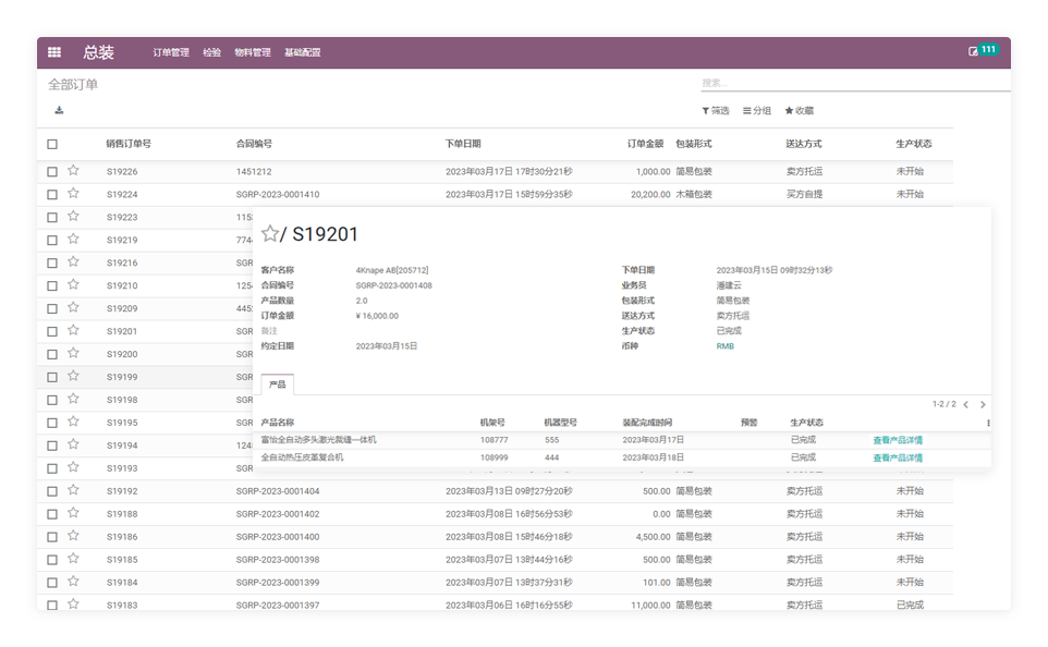 与销售环节数据实现共享,方便工厂及时掌握需要生产组装的机