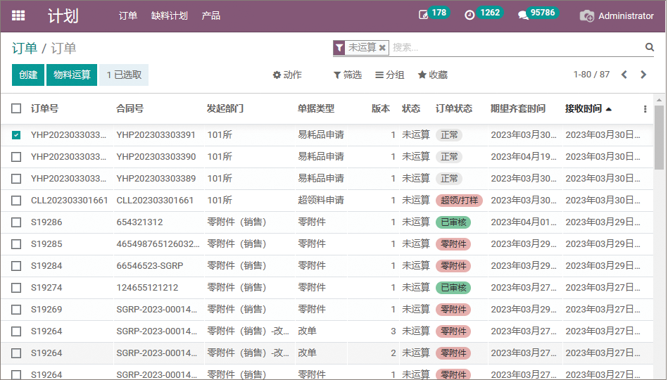 系统将收到的任务数据进行统一运算,以毫秒的运算速度进行计算,极大的提升了运算速度。并且在运算时实时查询库存。
