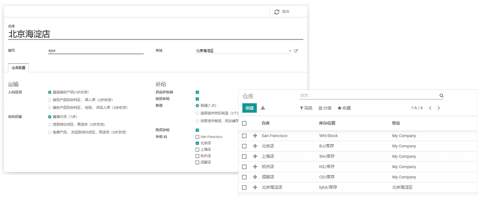 通过EDOS系统,轻松管理复杂的多公司仓库,一键设置仓库的运输出入库、补给方式。