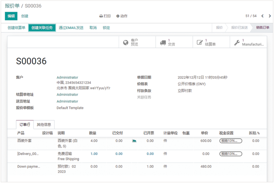 从建立报价单到确认销售订单,以及后续的研发、采购、生产、物流等环节,系统自动抓取相关数据,并且全部相关联。