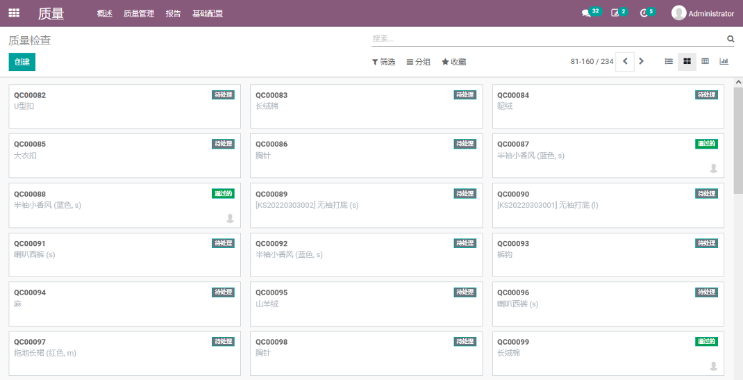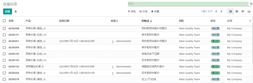 所有的质检记录都显示在质量检查,随时跟踪每个环节的质检情况。