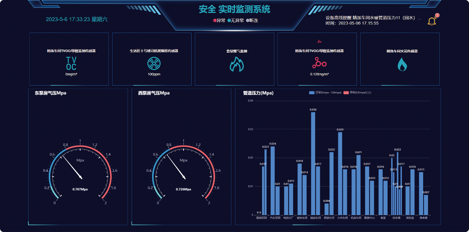 实时准确的监测厂区燃气、气压、管道压力、烟雾等多个方面的监控,帮助用户快速准确的发现安全漏洞和安全隐患。